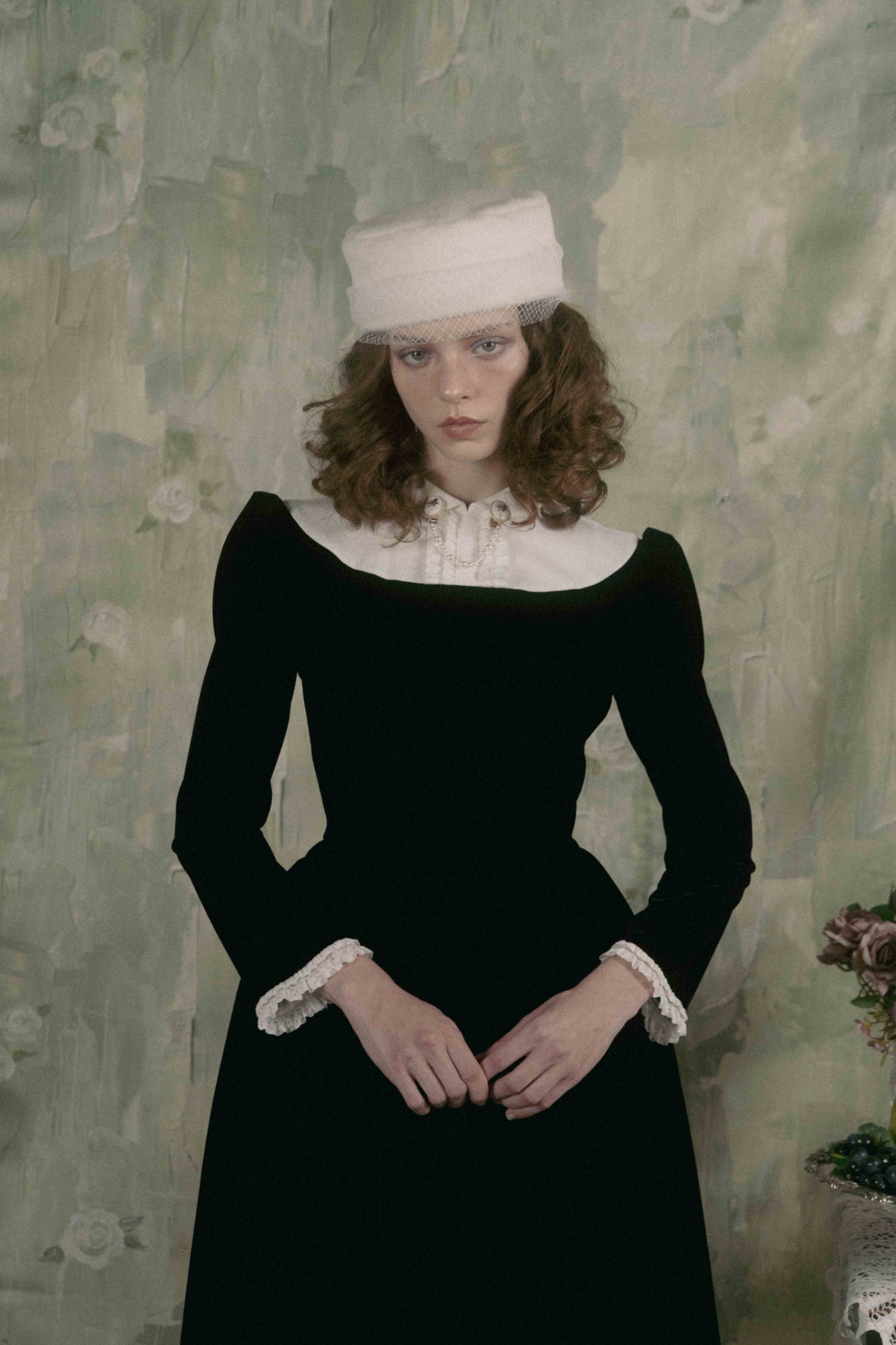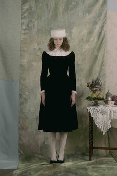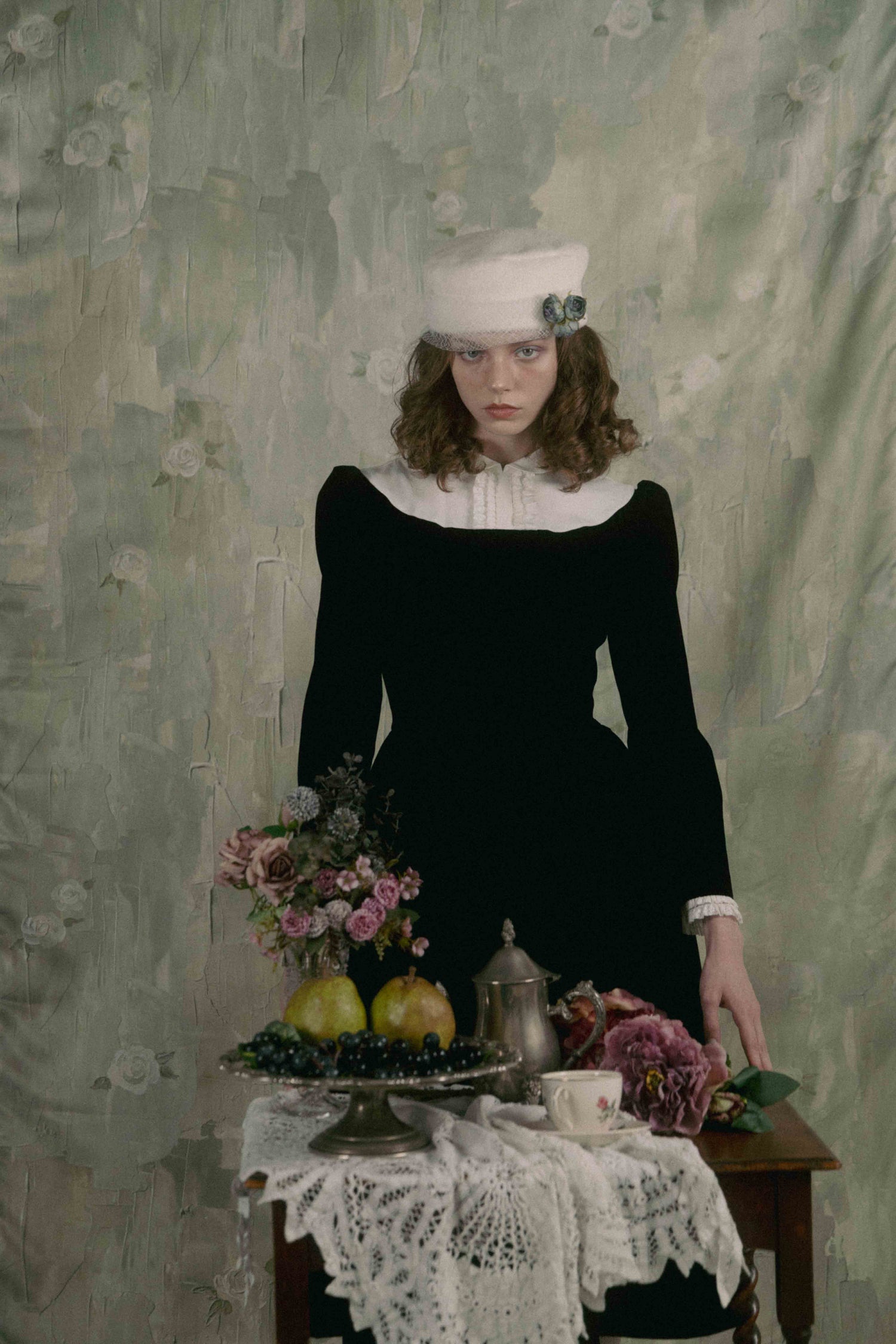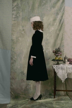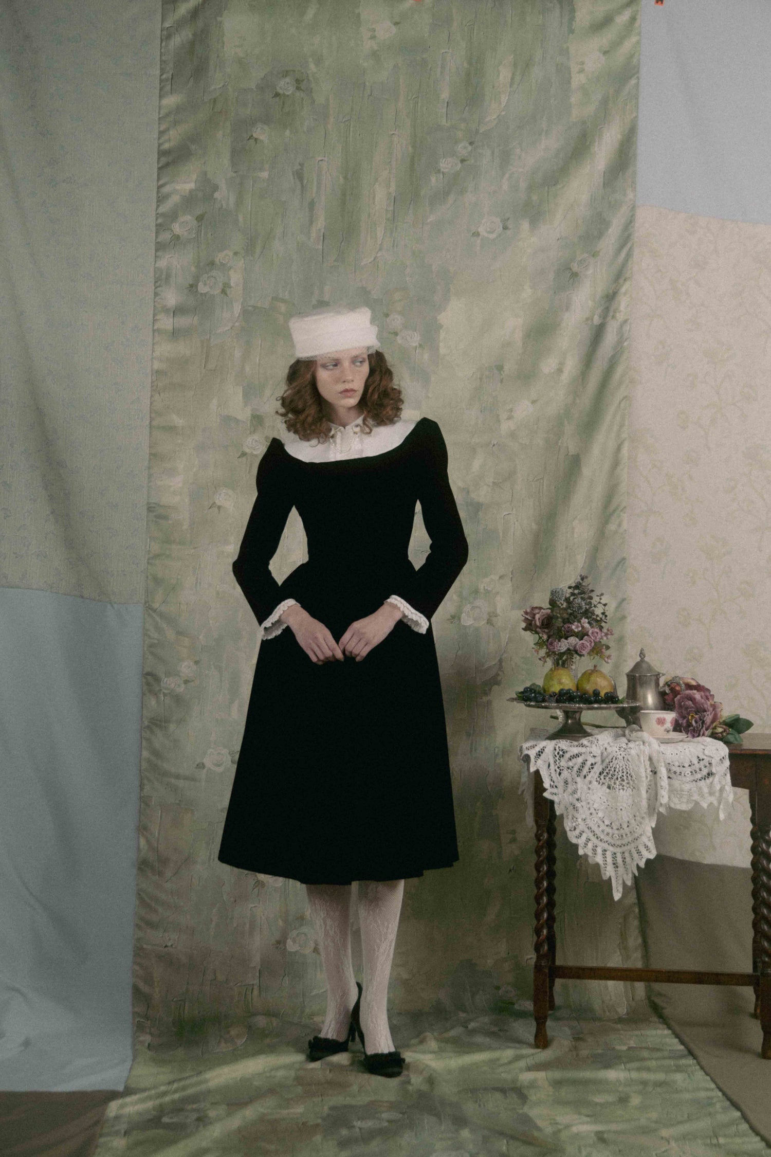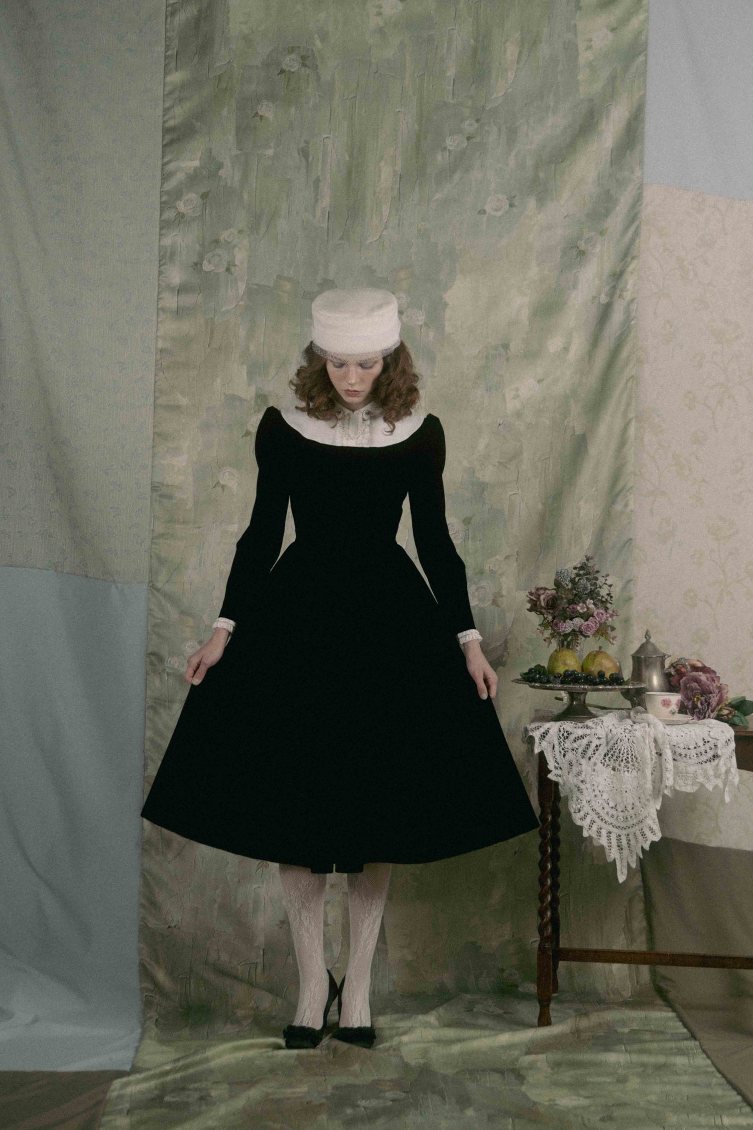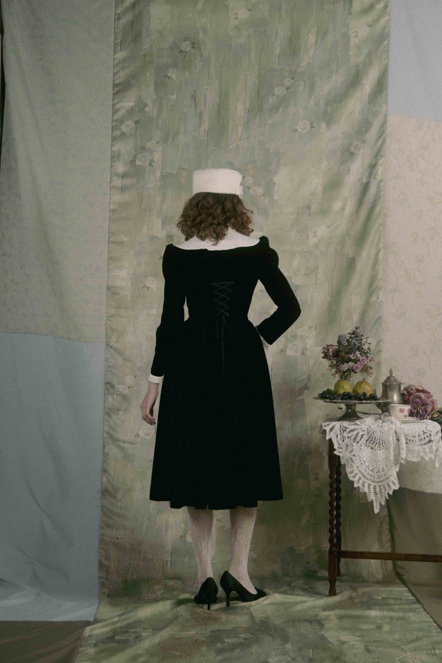 Crafted from luxurious velveteen, this dress is designed with the quiet tension of a museum gallery and the rich, carpet-like depth of classic interiors in mind.