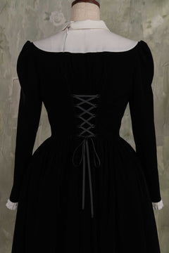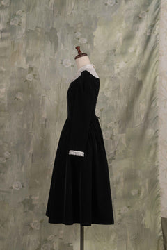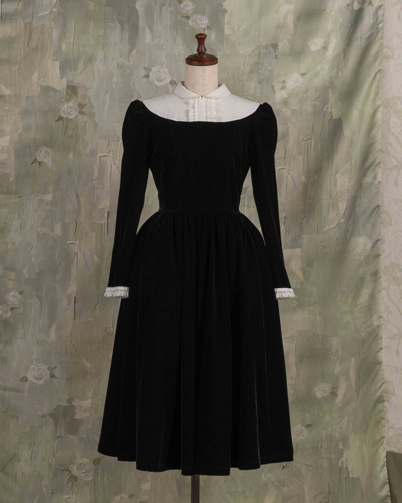 The crisp white collar beautifully highlights accessories—whether you adorn it with a necklace or a brooch like a curated artwork, the dress itself transforms into a small, personal museum.