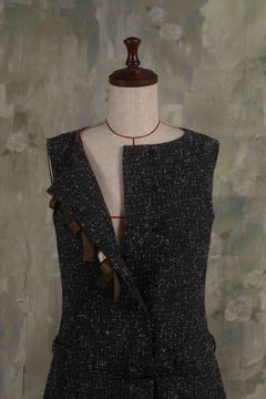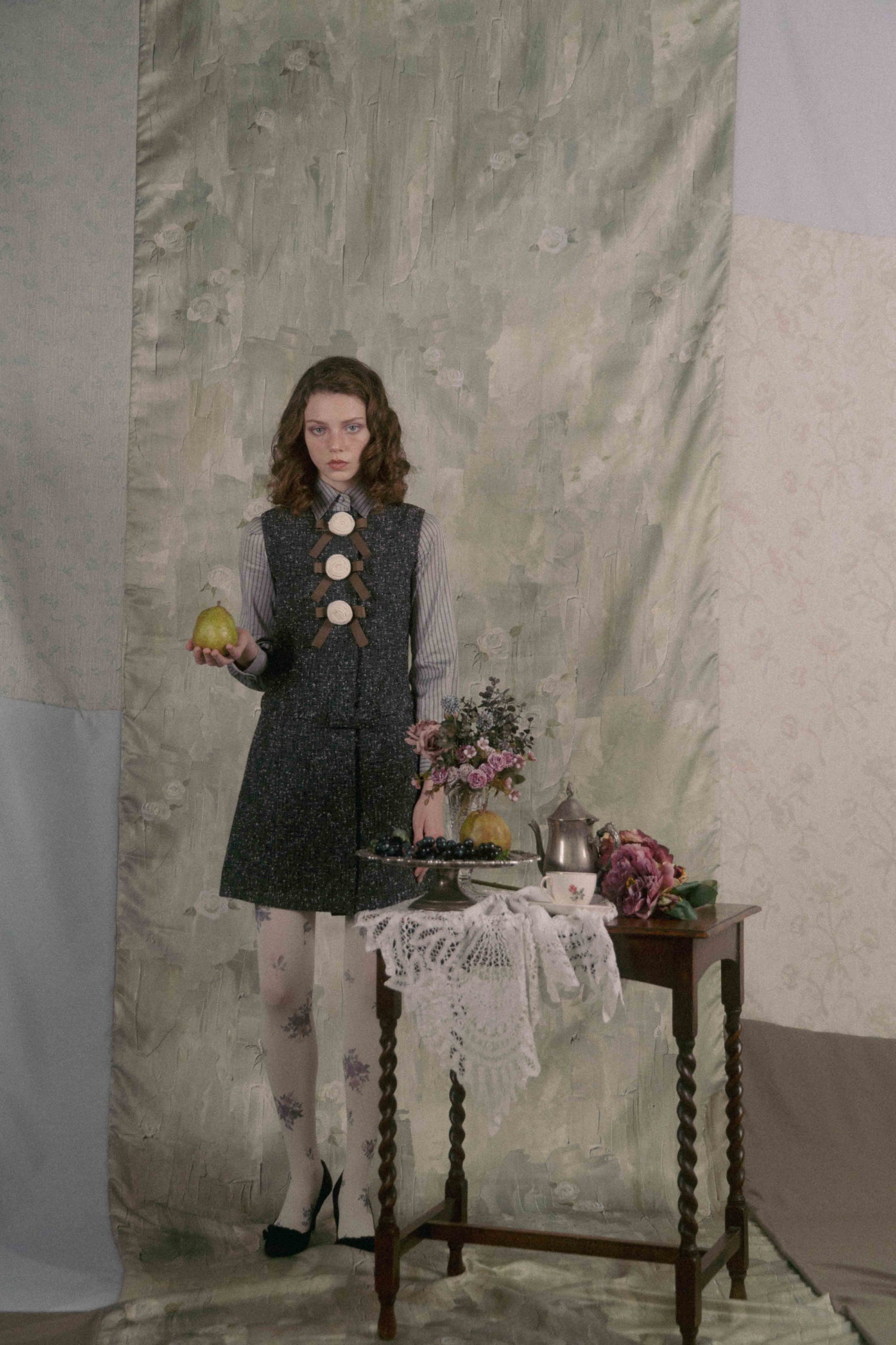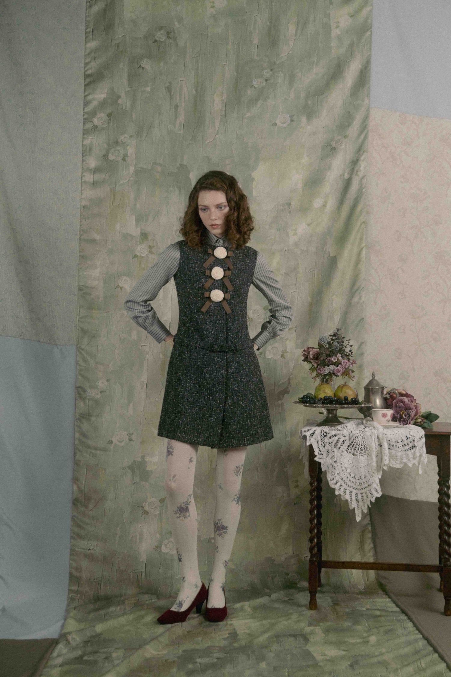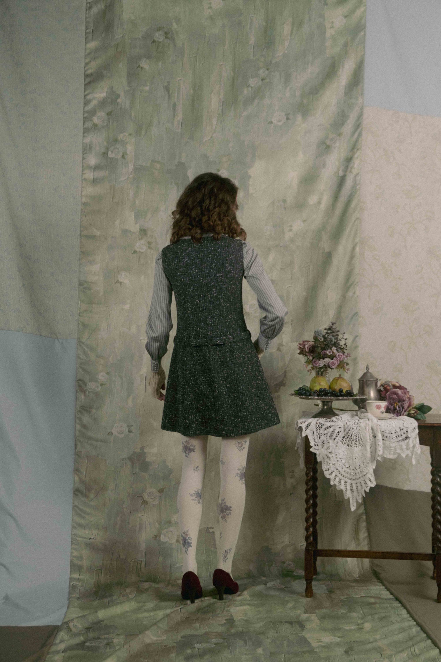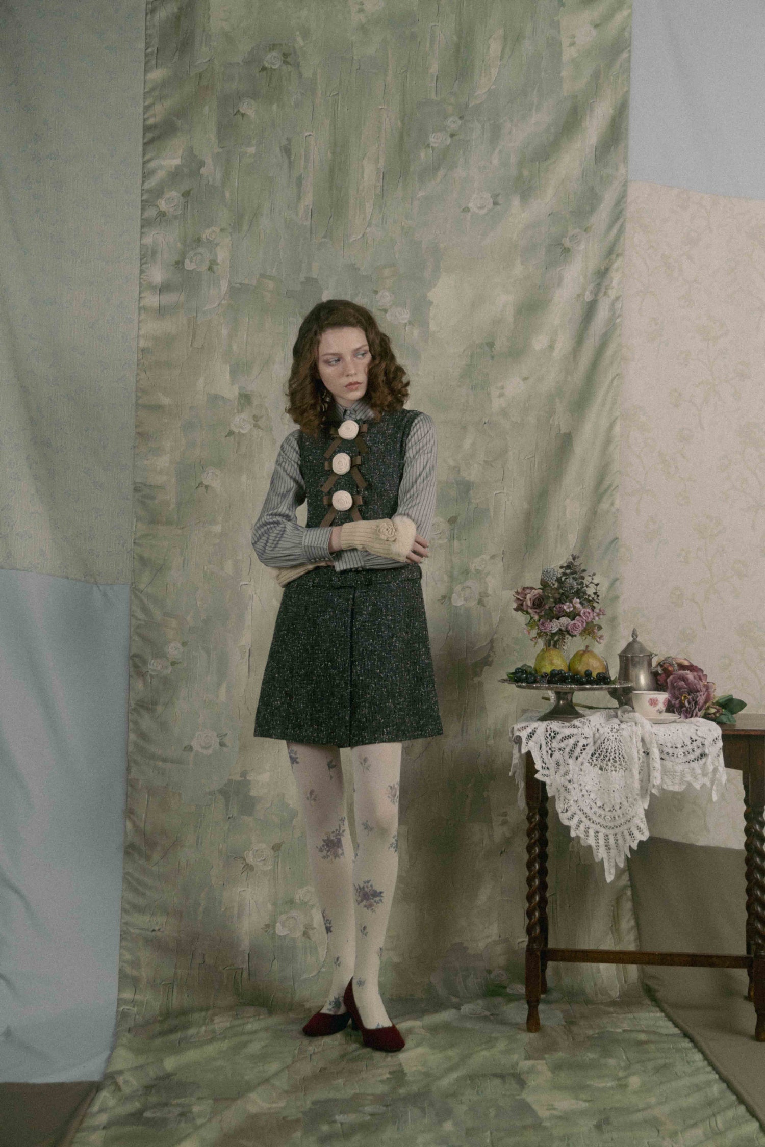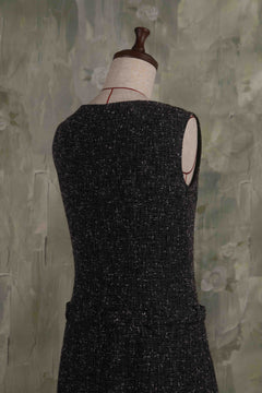 Its A-line silhouette and waist belt evoke a subtly retro mood, adding a touch of nostalgic elegance.