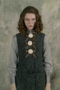 The front opens with snap buttons, allowing for effortless and graceful wear.