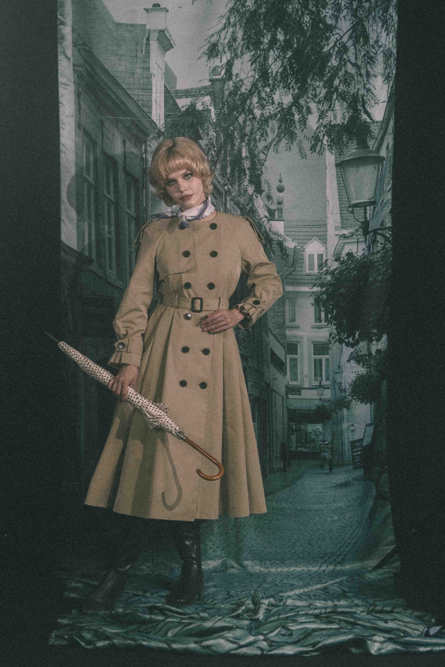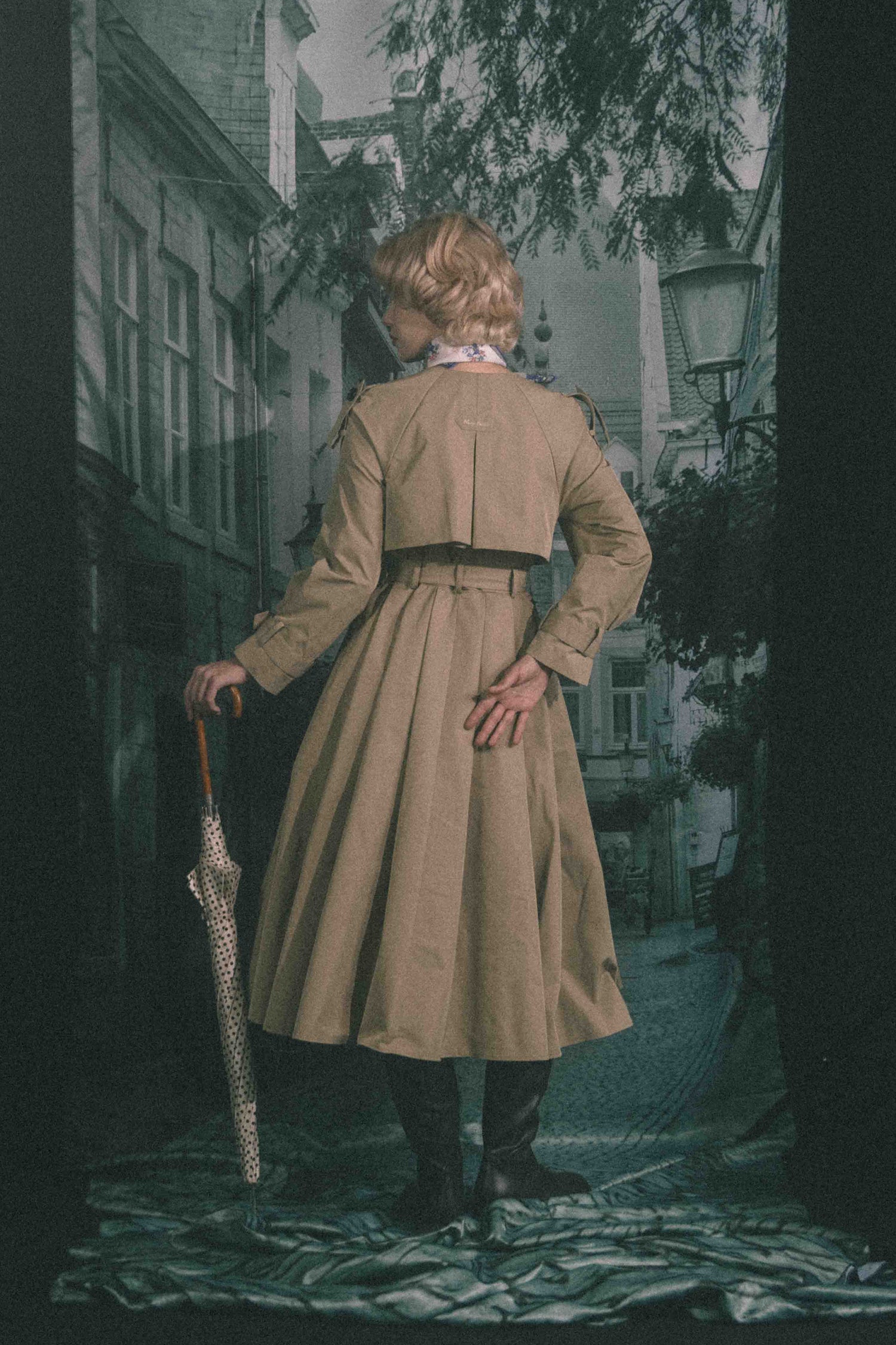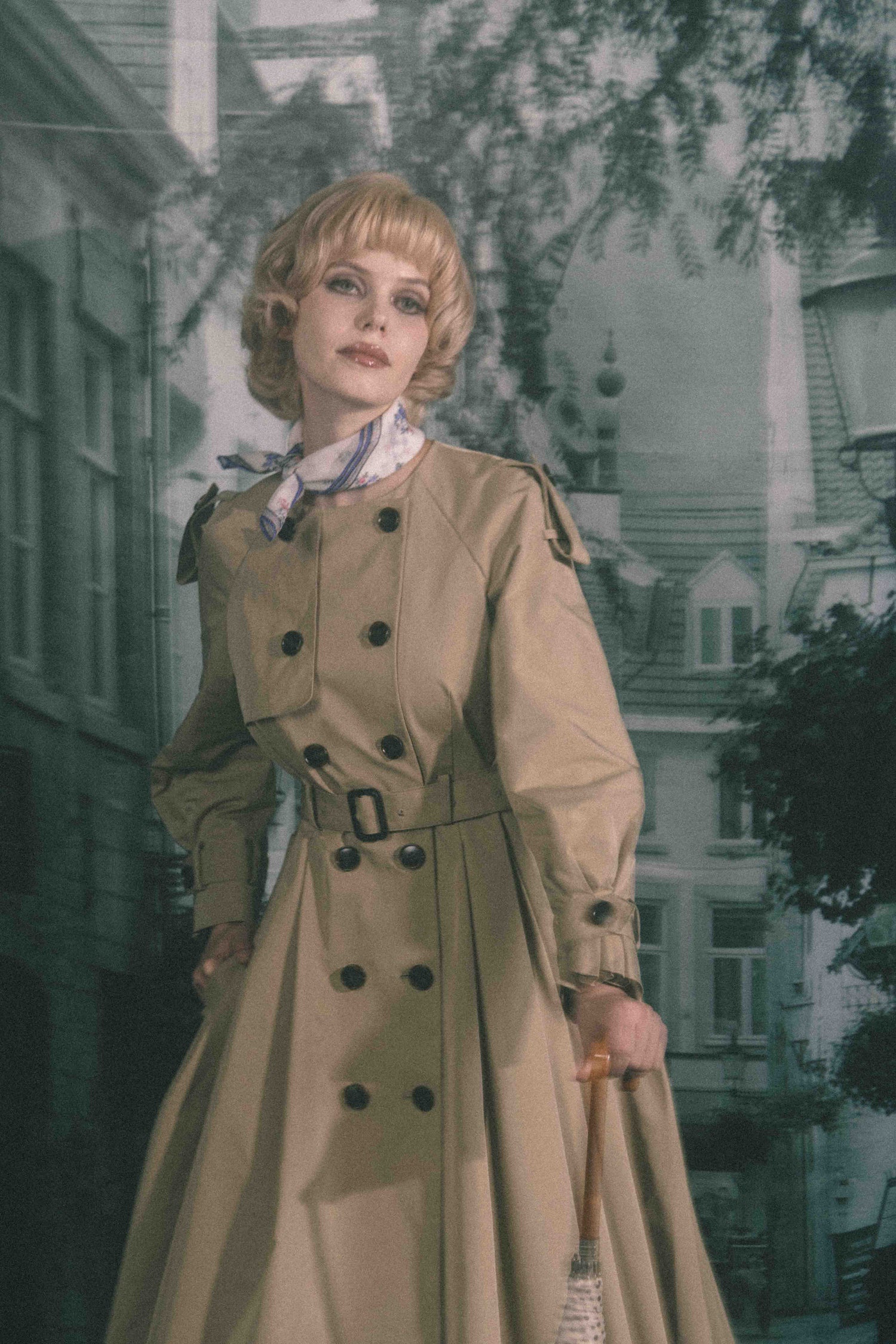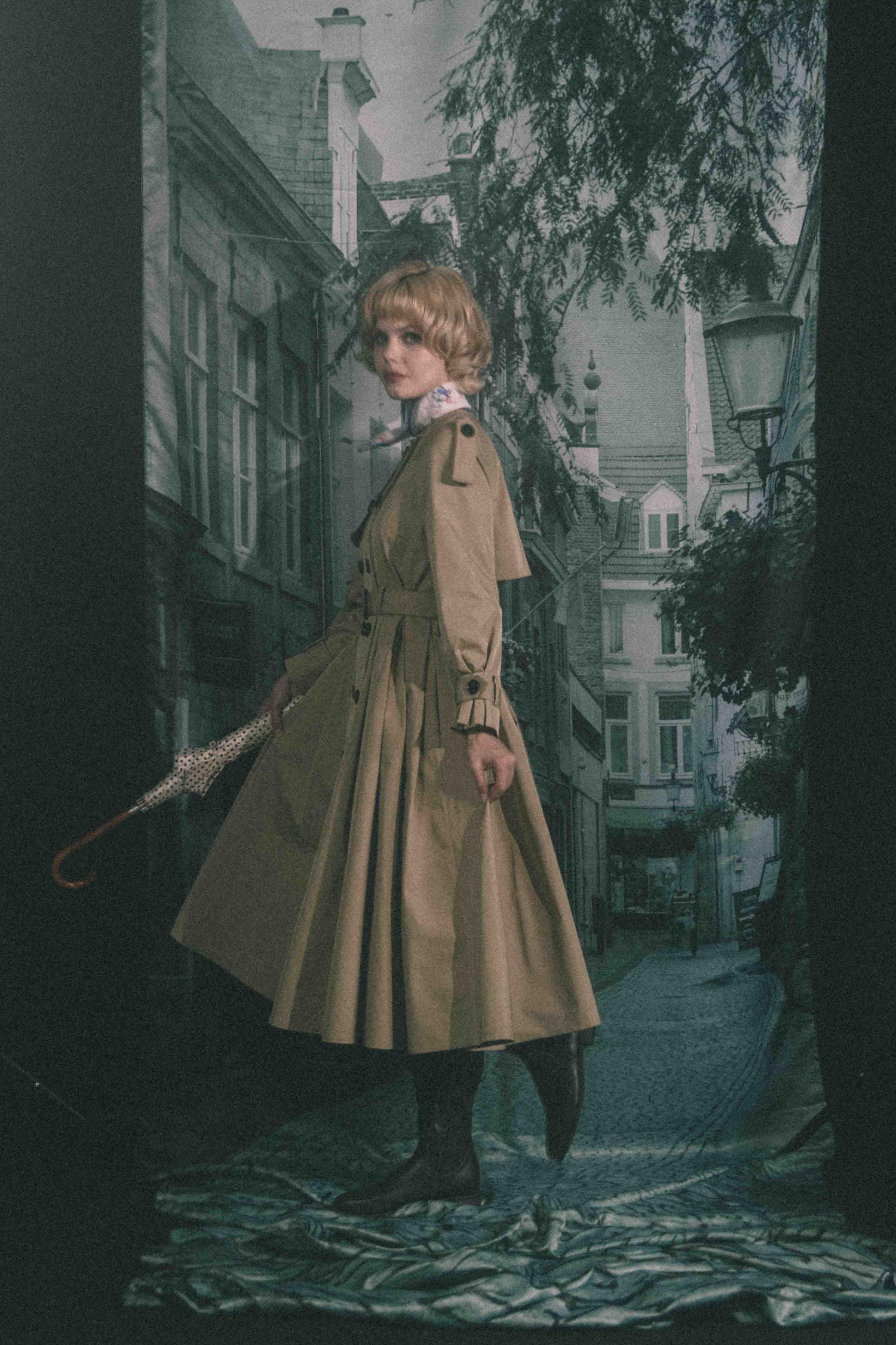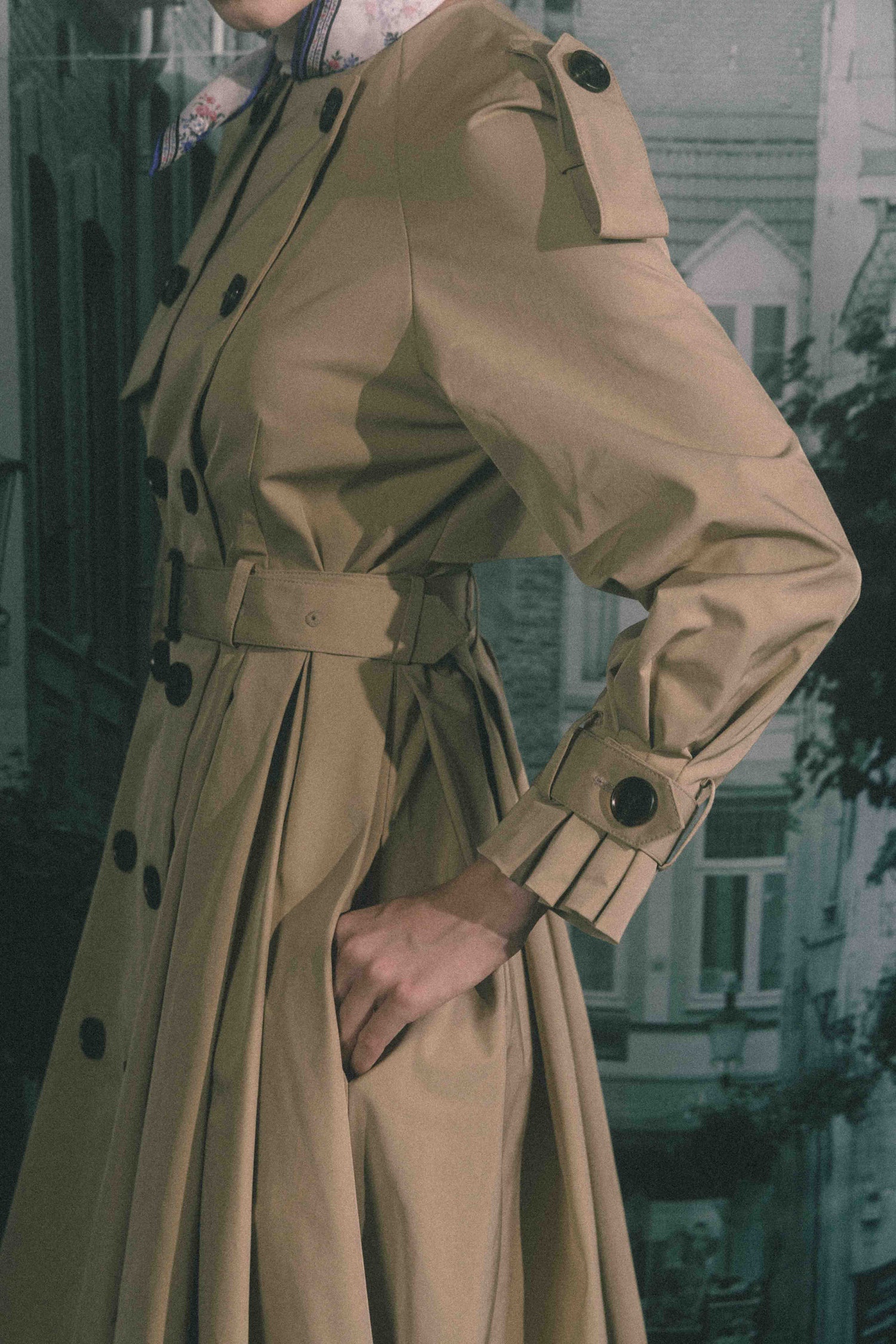 ドレッシーな雰囲気とトレンチコートの要素を掛け合わせて仕上げた1着。