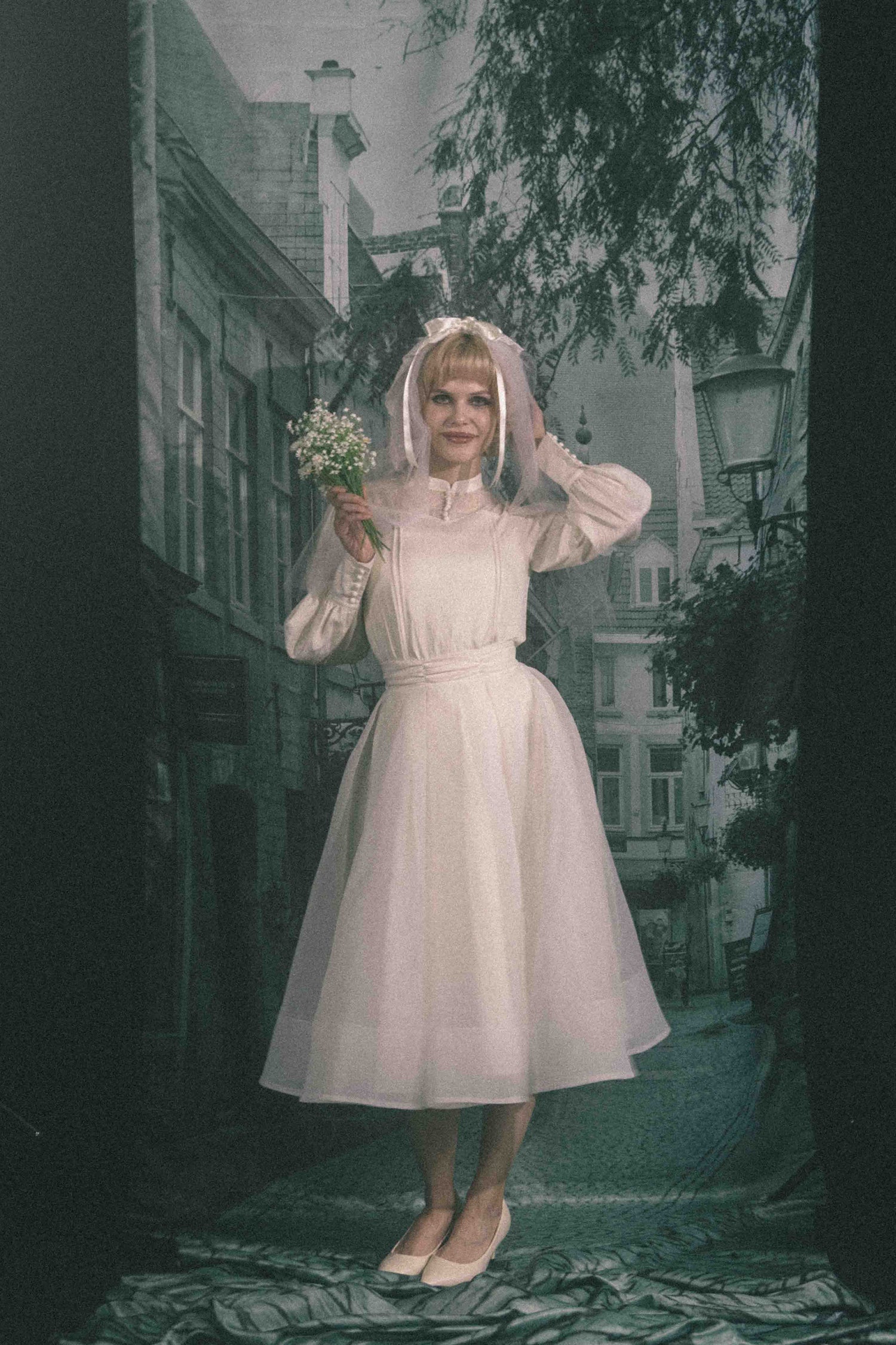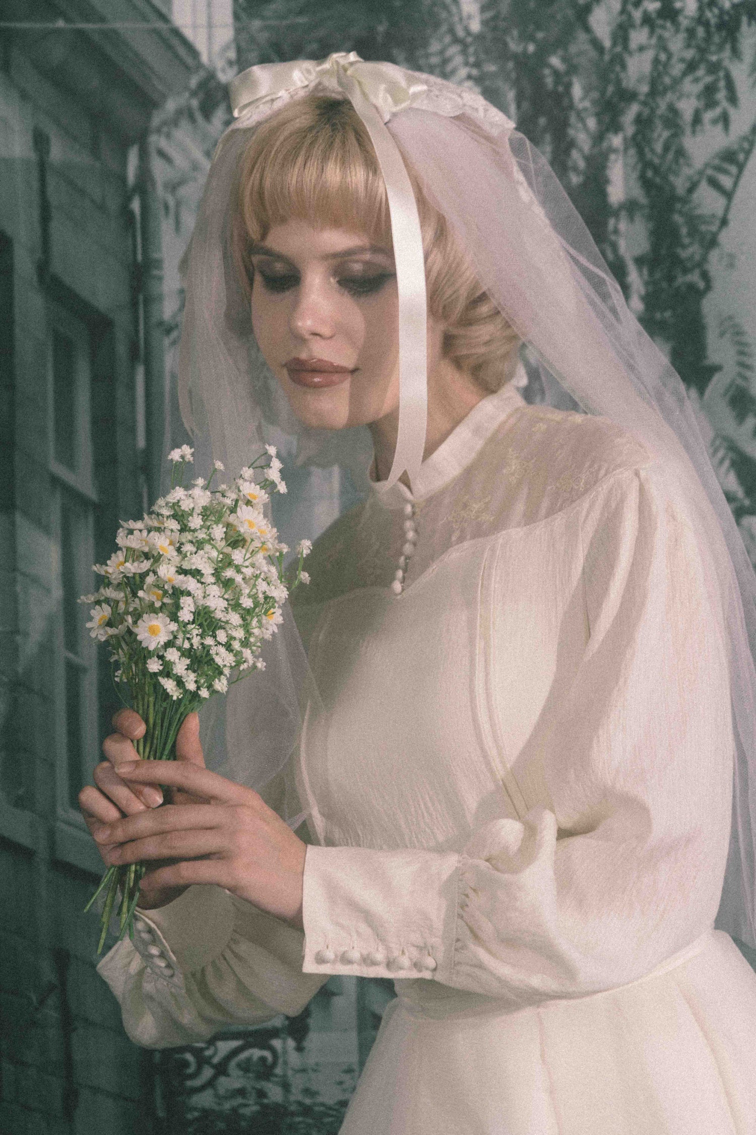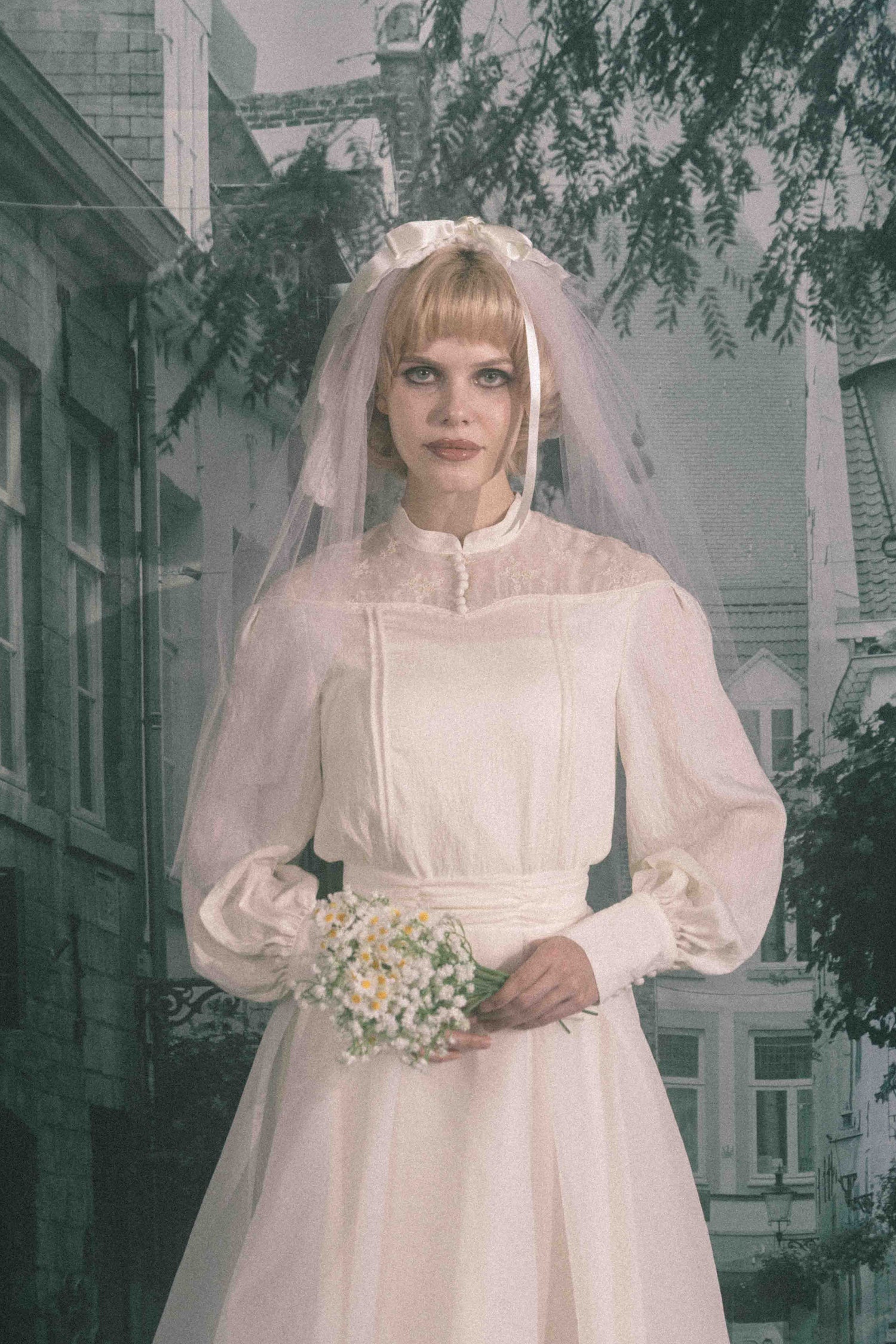 ヴィンテージのウェディングドレスから着想を得たブラウス。